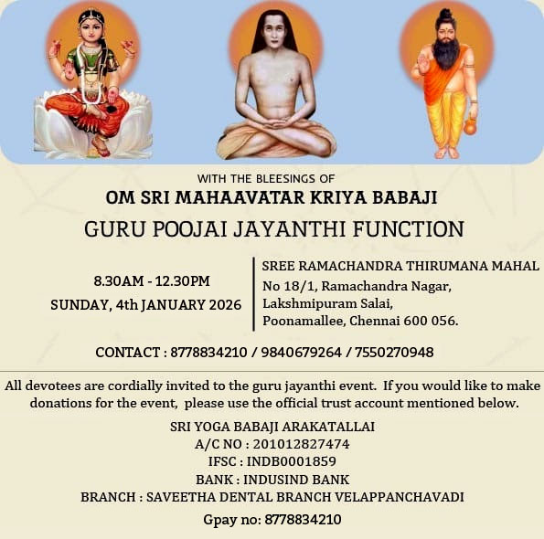 Mahavatar Babaji is said to be a ‘deathless’ guru, who has maintained a youthful form like millennial, and is still roaming in the Himalayas with his saintly presence and power of his Yoga, which we all know as Kriya Yoga today. He is supposed to have been born on November 30th, 203 AD in a small coastal village, known as Parangipettai in Tamil Nadu. He was a most unusual boy and was obviously an adept in the practice of the Kundalini Yoga from a previous life. His father was the priest of the temple of Muruga or Kartikeya, next to their house. He obviously prayed to Kartikeya to be born as his son. In answer to his prayers, the Lord took birth as his son, Nagaraja. Kartikeya is the eldest son of Lord Shiva.